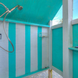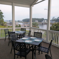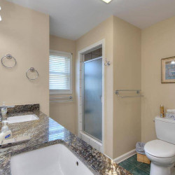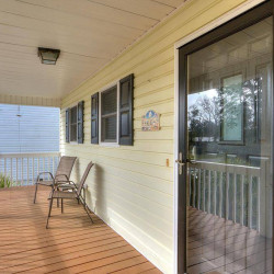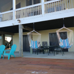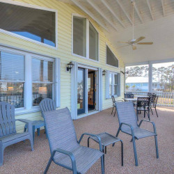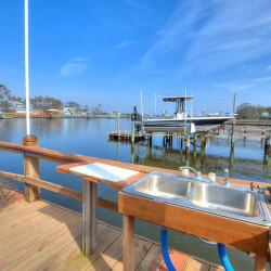 The fabulous porch overlooking the Intracoastal Waterway extends the entire length of the house and provides unobstructed 180 degree water views. Below the porch is a patio for enjoying the beautiful Waterway views as well . Your private dock has a sink with running water, making it easy to clean your daily catch. The outdoor shower with hot and cold water is a favorite among guests of all ages. Bring your boat, jet ski, paddleboard and a fishing pole or two and enjoy all the Waterway has to offer! Three kayaks and four bikes are available for your use, along with gas and charcoal grills.
