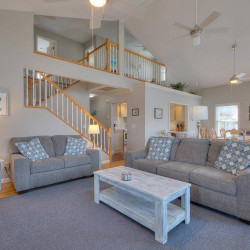 Built as a private residence, Beach Dreamin’ Too offers a well-furnished, updated kitchen with a wet bar that adjoins the open and spacious living and dining room. There’s also a small office and Wi-Fi, in case you need to stay connected to folks who aren’t lucky enough to be enjoying paradise with you. Two bedrooms have king beds, 1 has a queen, the loft has a futon & twin and the office has a twin Serta loveseat/sleeper. A full size washer and dryer are also available.